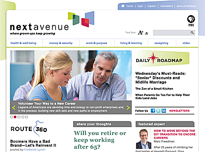 From public TV, a new site for 50-somethings — Next Avenue, says today’s story in the New York Times.
