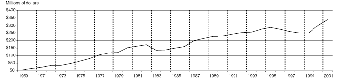 Figures are rising again since failure of the zero-it-out movement: $300M for FY2000 and $340M for FY2001.