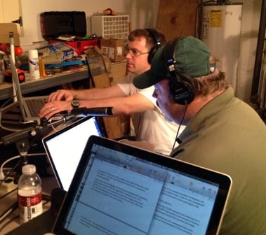David Tallacksen, left, WBGO v.p. of operations and engineering, and news director Doug Doyle kept the jazz station broadcasting during Superstorm Sandy from a makeshift studio in Tallacksen’s house. (Photo: Andrew Meyer)