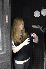 News Outlet student reporter Rachel Lundberg records narration for a story on local nursing homes. (Photo: TheNewsOutlet.org)