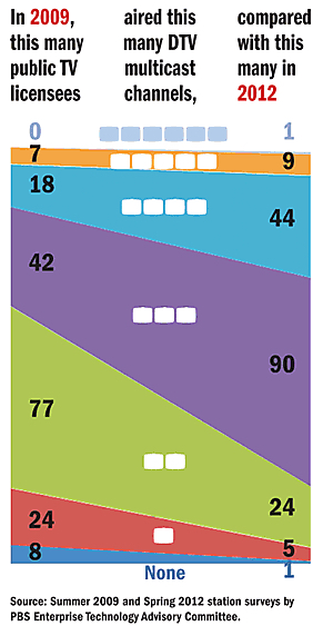 Two years ago, only a few pubTV multicast channels had audiences that were large enough to be detected by Nielsen (Current, March 1, 2010), but now 25 stations receive ratings for their digital channels, according to Kristen Kuebler, director of station research at TRAC Media Services.