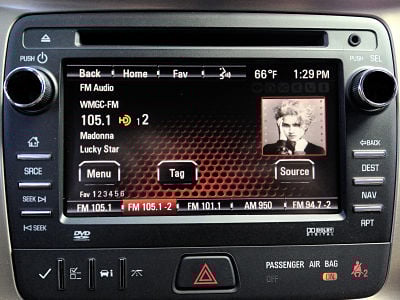 The standard radio on the 2013 GMC Acadia is one of the first to include a new HD Radio feature — the “Artist Experience” display of album cover art, station logos and other information.