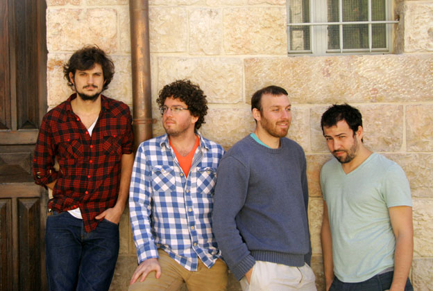 After listening to This American Life podcasts during a roadtrip across the United States, Mishy Harman, second from the left, was inspired to begin producing audio stories. He created a series for Israel’s Army Radio with, from left, Yochai Maitai, Ro’ee Gilron and Shai Satran.
