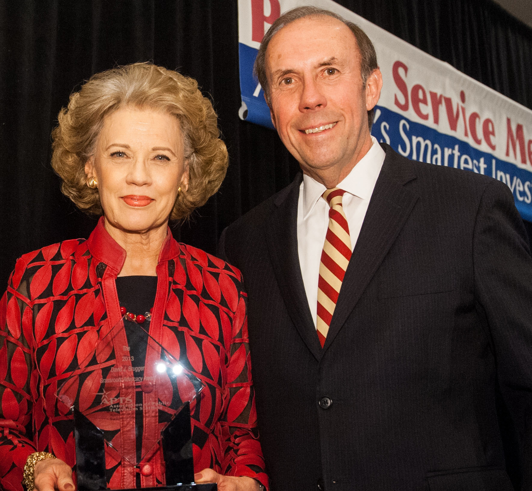 In addition, APTS presented the 2013 David J. Brugger Grassroots Advocacy Award to Jo Ellen Chatham, a lay member of the APTS Board, in recognition of her outspoken support of public broadcasting. The co-chair of the PBS SoCal board of trustees is a prominent California Republican who served as the first vice chair of the Republican Party of Orange County.