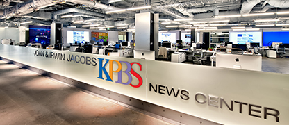 Since covering the 2007 wildfires in San Diego, KPBS has completely restructured its news operations so that TV, radio and digital journalists work together in a “converged newsroom.” The News Center, pictured above, opened in October 2011.