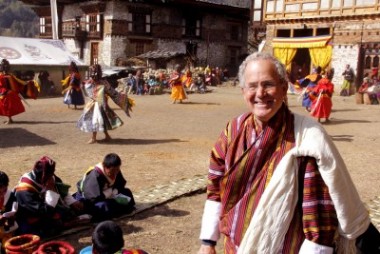 Travelscope host and director Joseph Rosendo wears a gho, the traditional native garb for men in Bhutan. The APT-distributed show won two Daytime Emmys. (Photo: Julie Rosendo)