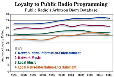 The relationship is so strong that virtually all researchers we interviewed agreed on one point: Programs that depress listener loyalty are likely to reduce audience-sensitive revenues. Research also strongly points to measurably lower listener loyalty for locally produced news and information programs.