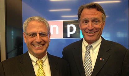 Outgoing NPR President Gary Knell, left, with Paul Haaga, NPR vice chair who is stepping up as interim c.e.o. (Photo: Ben Mook)