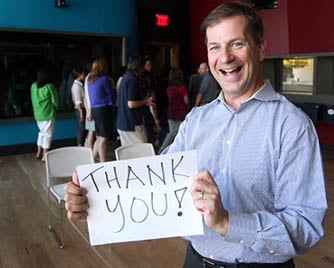Vanderwilt expresses gratitude to supporters in a photo taken in KUT/KUXT’s new broadcasting facility.