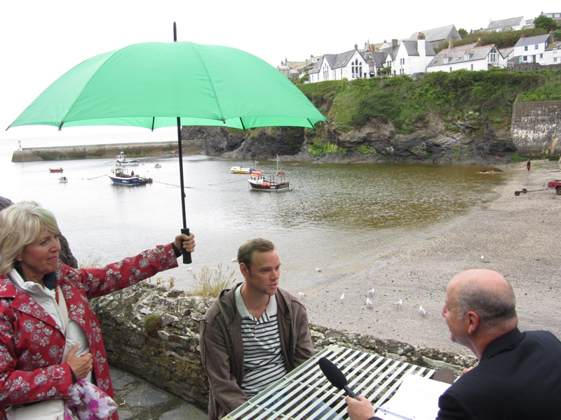 Joe Absolom, who plays Al Large on Doc Martin, gets the star treatment during a press interview on the set in Port Isaac, Cornwall. APT is releasing Doc Martin: Revealed, a behind-the-scenes special, on Thanksgiving Day. (Photo: APT)