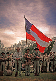 Confederate soldiers wave their flag before marching into battle in Civil War: The Untold Story. (Photo: Great Divide Pictures)