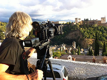 Vicente Franco shoots the Alhambra in Granada, Spain, for The Ornament of the World, a two-hour documentary that chronicles how Muslims, Jews and Christians forged a common culture in medieval Spain. (Photo: Kiki Kapany)