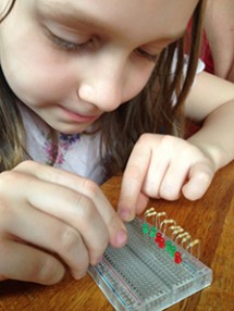 So easy a child can do it? Kaia Keefe, daughter of WNYC’s data news chief John Keefe, helped her dad build a cicada tracker. (Photo: John Keefe/WNYC)