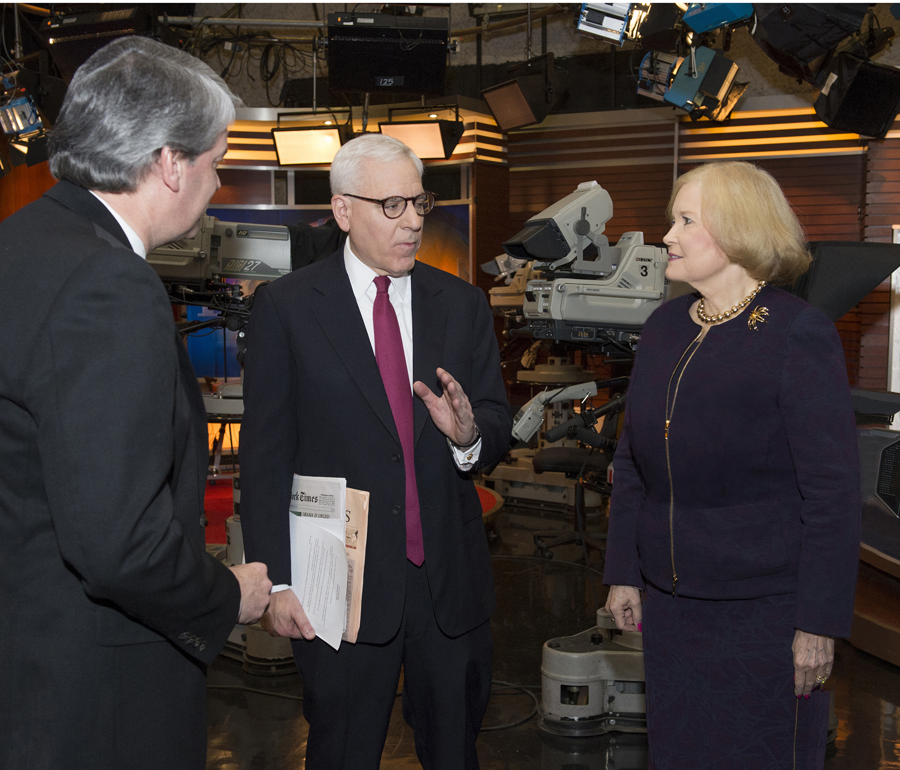 David Rubenstein met with WETA President Sharon Rockefeller at the station Tuesday to announce his donation. (Photo: Cable Risdon Photography)