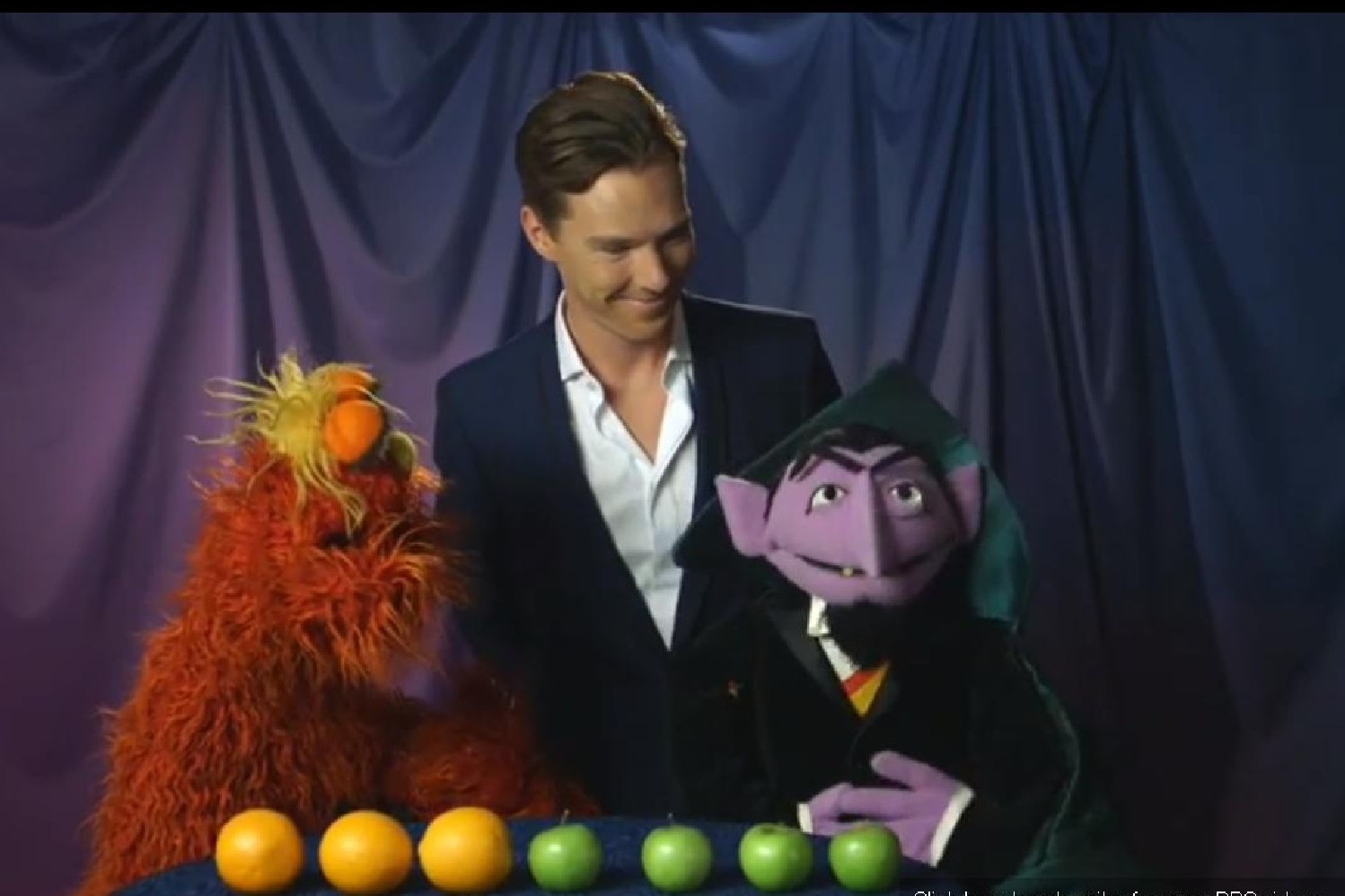 Murray and The Count help Benedict Cumberbatch assess the numerical properties of fruit in a PBS video.