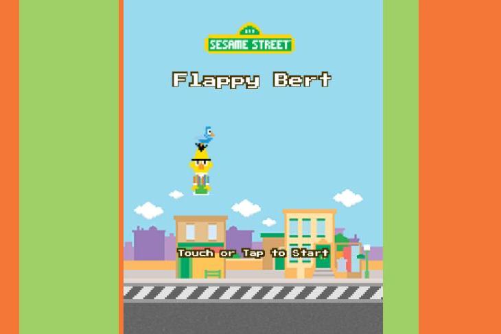 • Less than a week after the maker of the wildly popular mobile game Flappy Bird announced he would pull the plug on his creation, Sesame Workshop has introduced the browser game Flappy Bert. The gameplay, where players control a bird as it navigates Sesame Street‘s Bert among obstacles, draws heavily on the original. It’s one of several Flappy Bird clones on the market but the only one starring Bert in an 8-bit sheen.