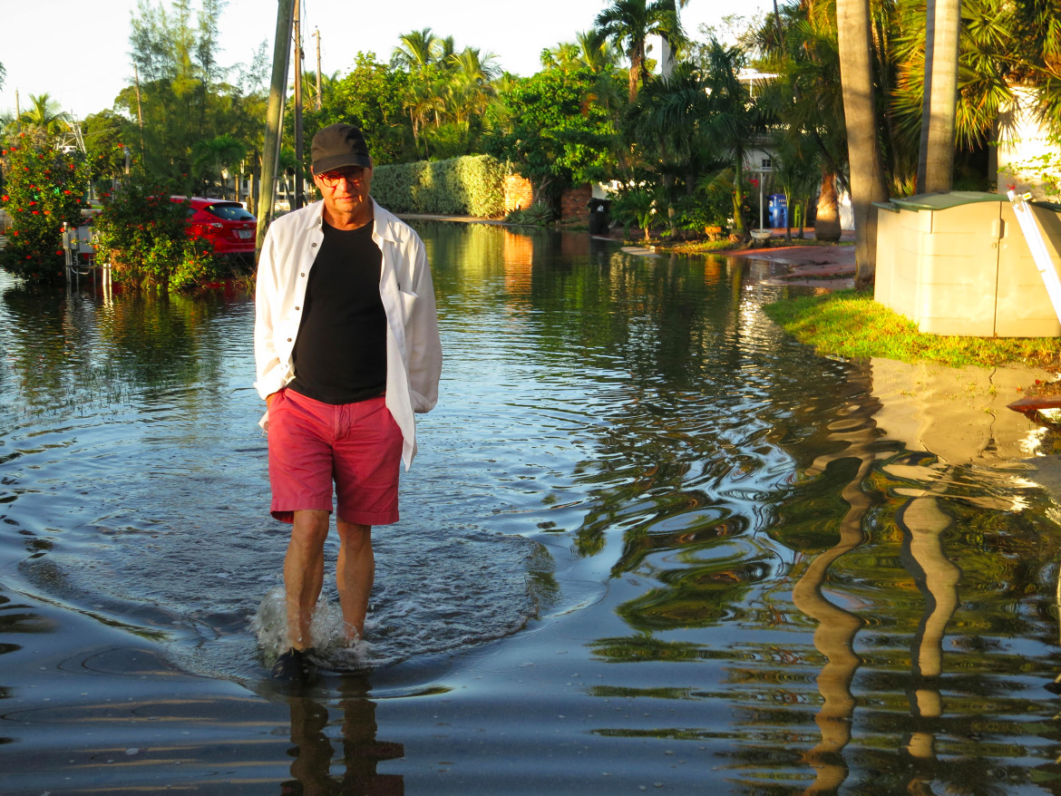 Chadwick walks down a flooded street in Fort Lauderdale, Fla., while reporting for Burn: An Energy Journal. (Photo: SoundVision Productions)