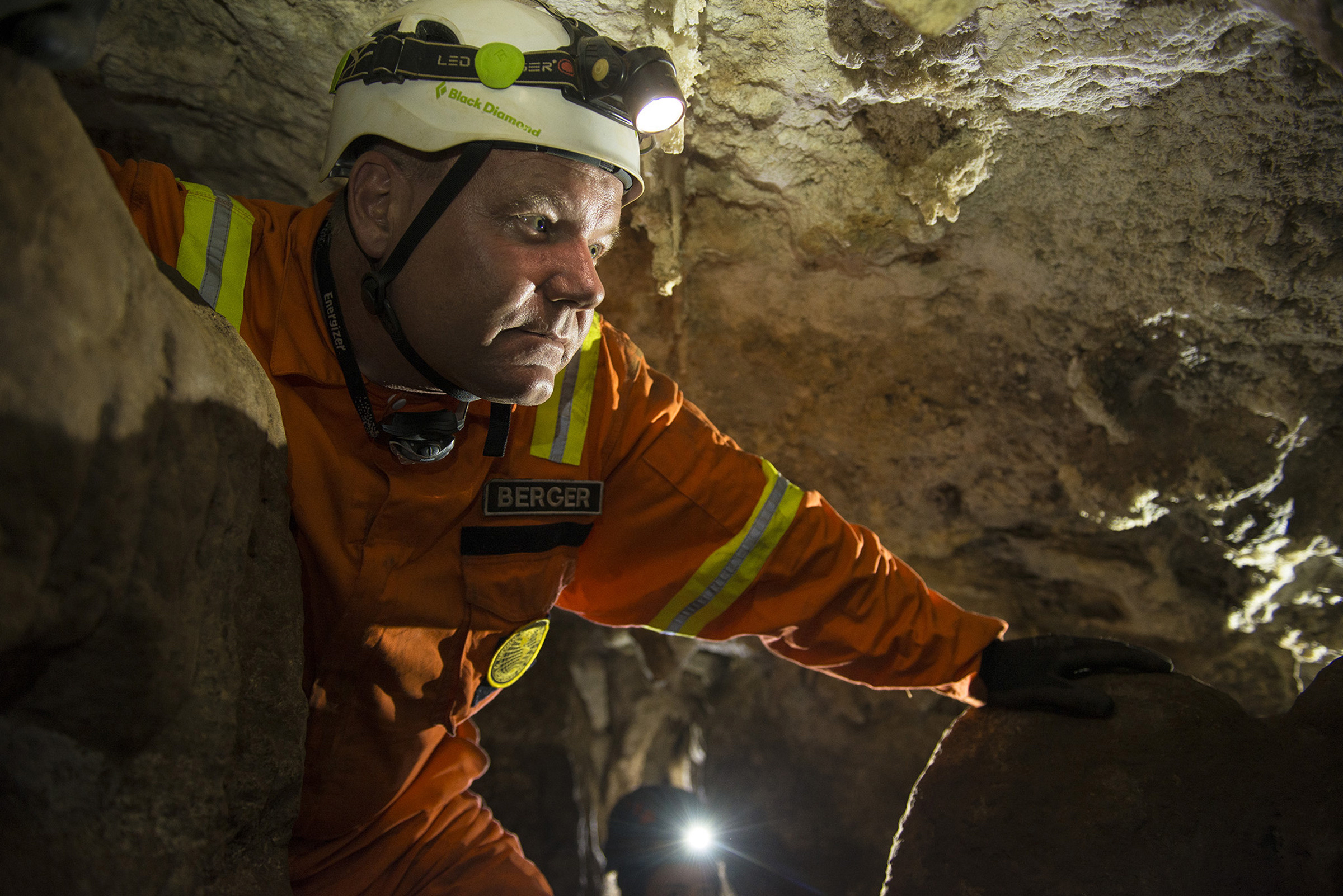 Lead researcher Lee Berger pushes deep into a South African cave in the Nova/National Geographic special Dawn of Humanity. (Photo: Robert Clark from the October 2015 issue of National Geographic magazine)