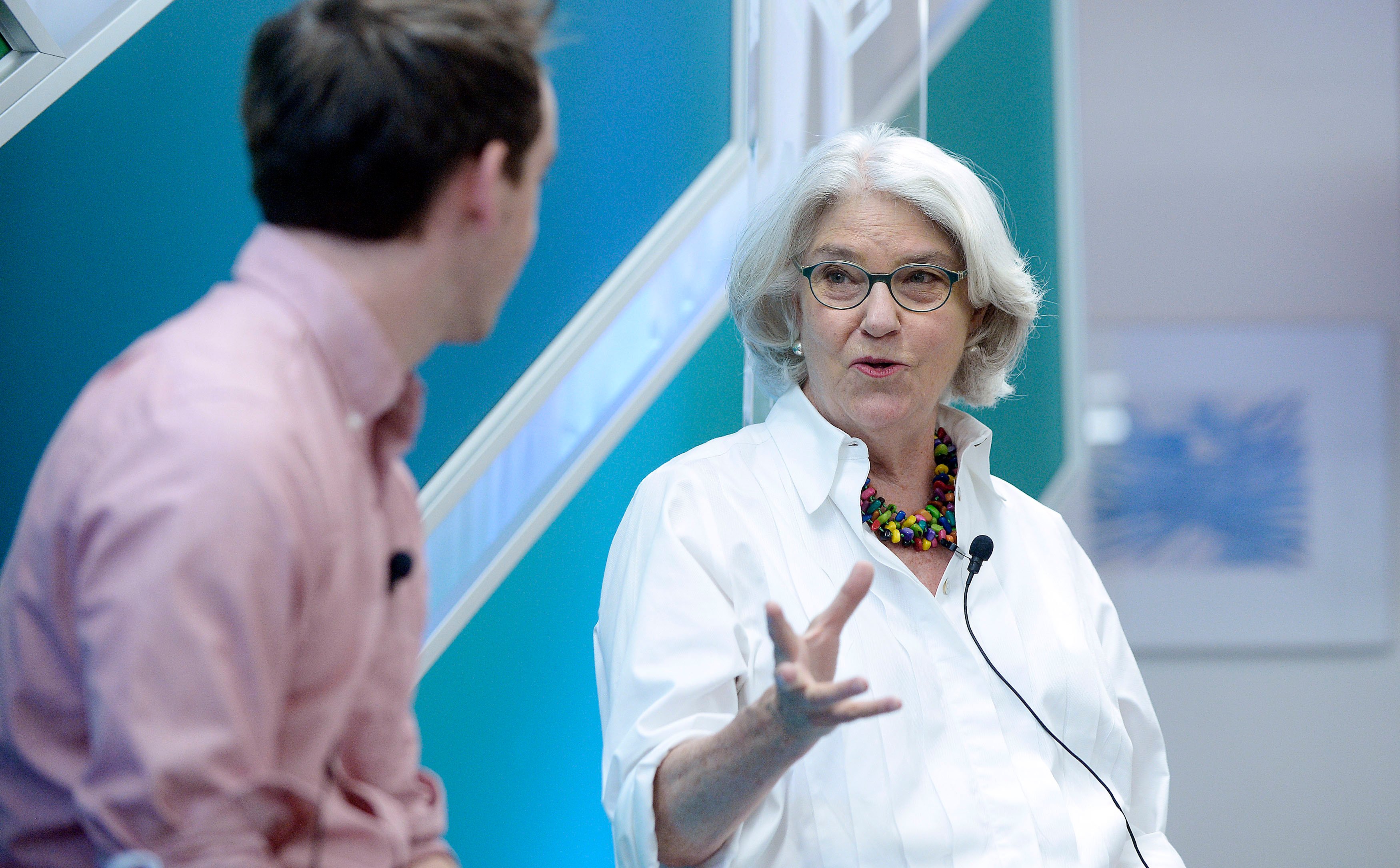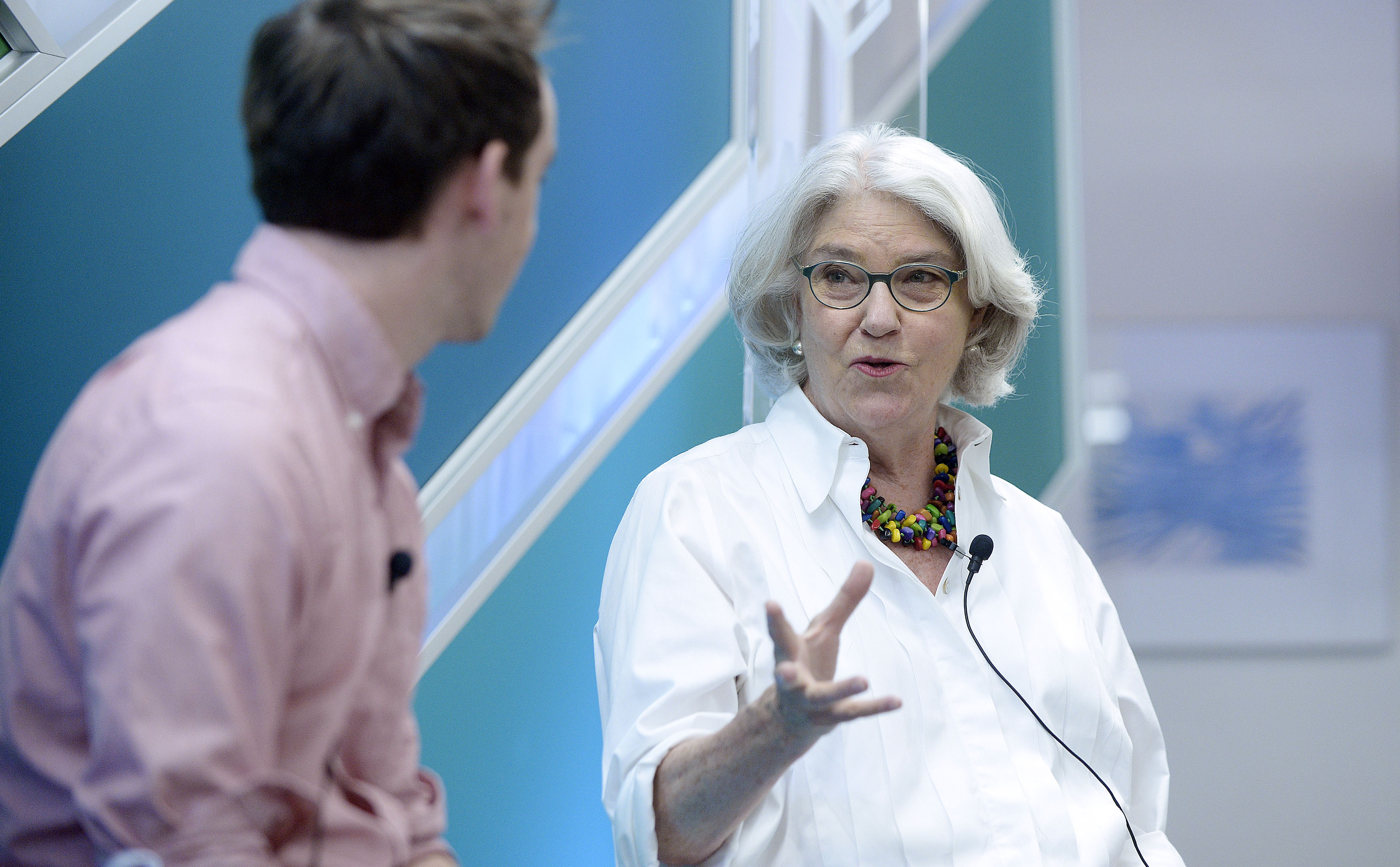 Eaton speaks with Derek Thompson, moderator for “Masterpieces in the Making: The Art of Classical Storytelling in the Digital Age,” an Aspen Institute event in 2015. (Photo: Olivier Douliery, Aspen Ideas Festival)
