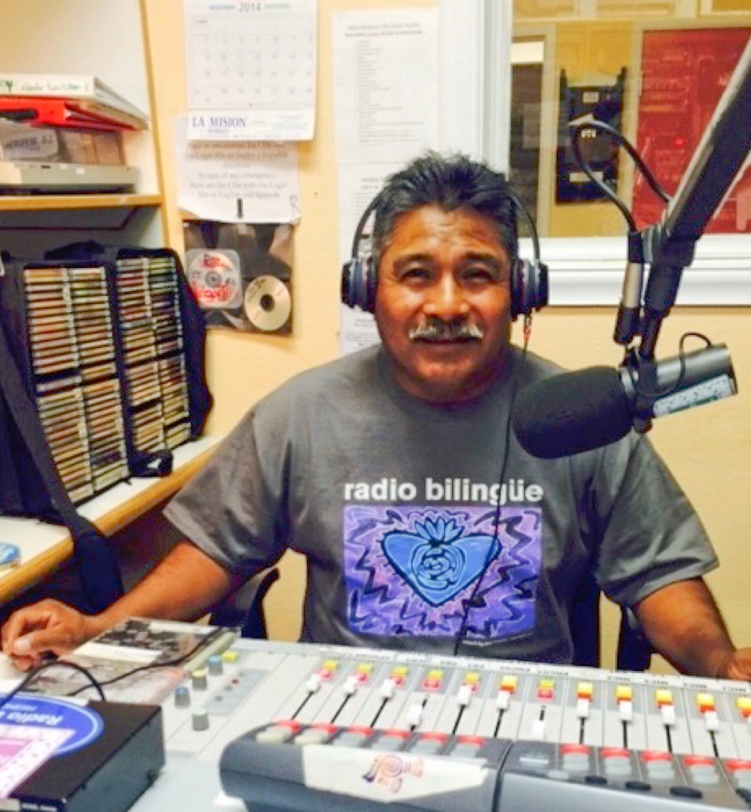 Mario Gómez, a Radio Bilingüe volunteer who operates the board during the La Hora Mixteca program. (Photo: Radio Bilingüe)