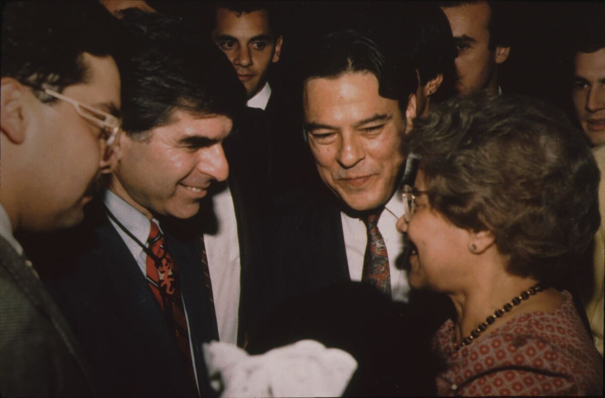 Willie Velasquez with Michael Dukakis at an event in San Antonio in the 1980s. (Photo credit: George Velasquez)