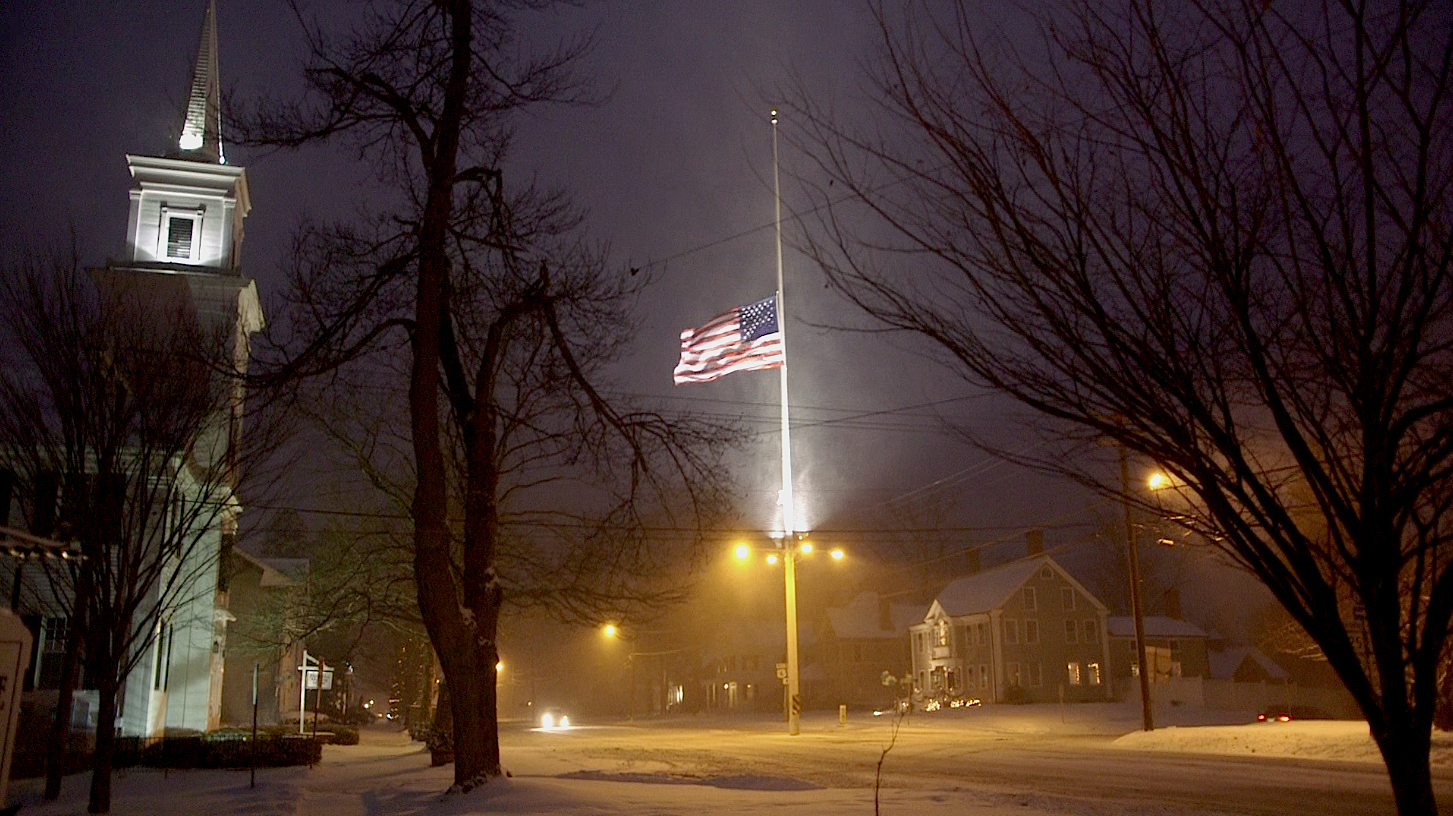 A flag in Newtown, Conn., flies at half-staff following the mass shootings of schoolchildren and teachers at Sandy Hook Elementary School. (Photo: Derek Wiesehahn)