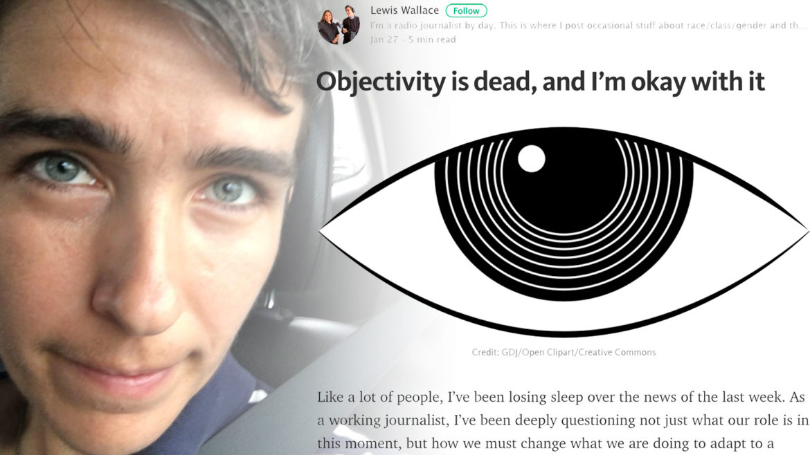 Lewis Wallace says he’ll “cop to clickbait” on the headline that marked the beginning of the end of his reporting job at Marketplace — “Objectivity is dead and I’m ok with it.”