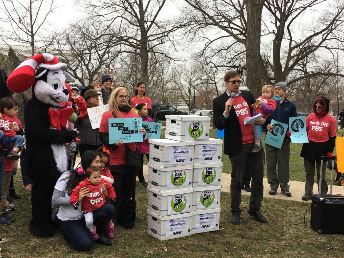 Organizers later delivered petitions to members of Congress, bearing 660,000 signatures gathered online to save CPB funding from being cut by President Trump. His initial budget proposes eliminating funding for the corporation.