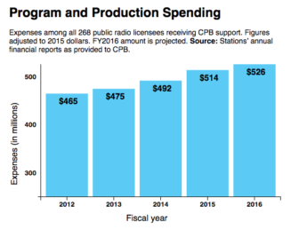 As a whole, all 268 public radio licensees that receive CPB support now spend more than half a billion dollars each year on programming, up $61 million (+13.1 percent) from FY12.