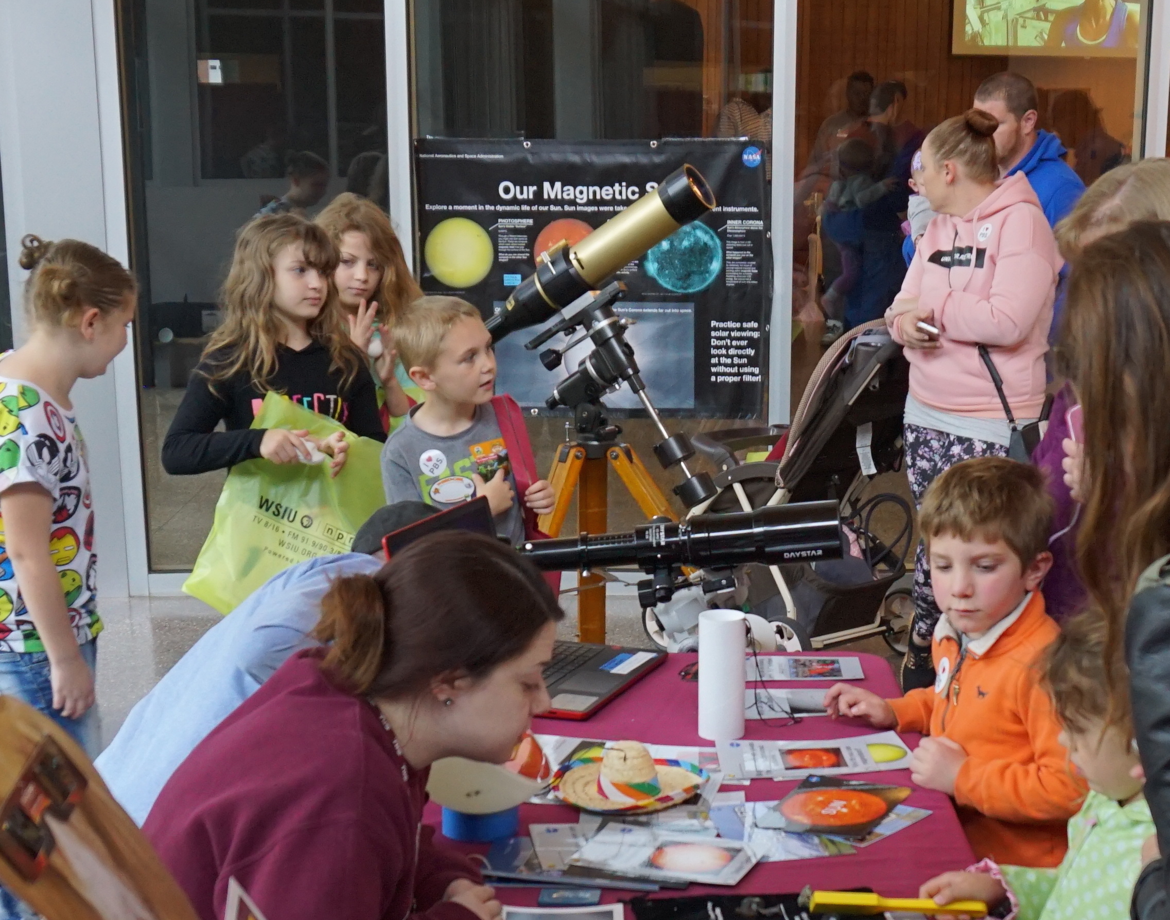 Young visitors learn about the solar system at WSIU’s “Star Party” in April, a kickoff to eclipse activities.