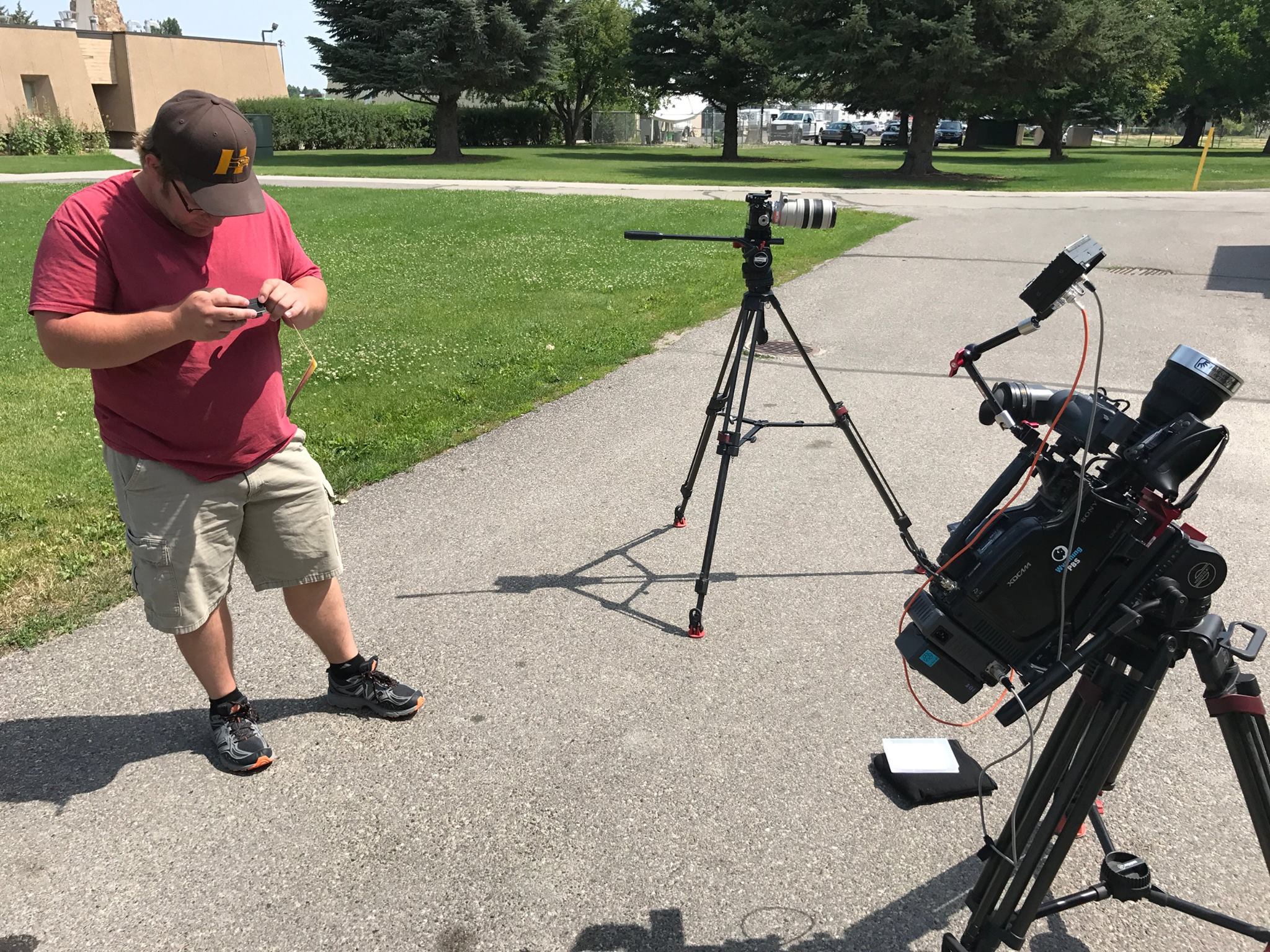 WyomingPBS producer Steven McKnight tests camera filters for eclipse coverage.