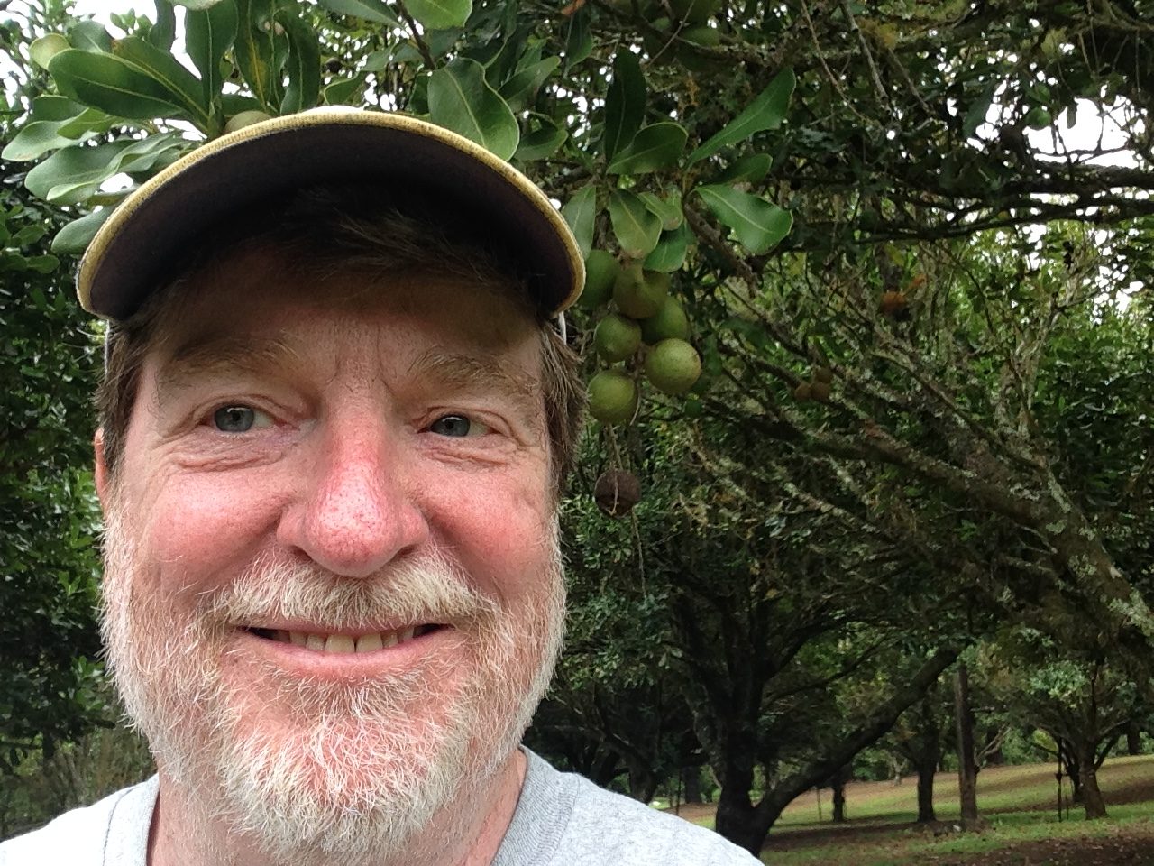 Conan in his grove of 175 macadamia nut trees on Kohala Mountain.