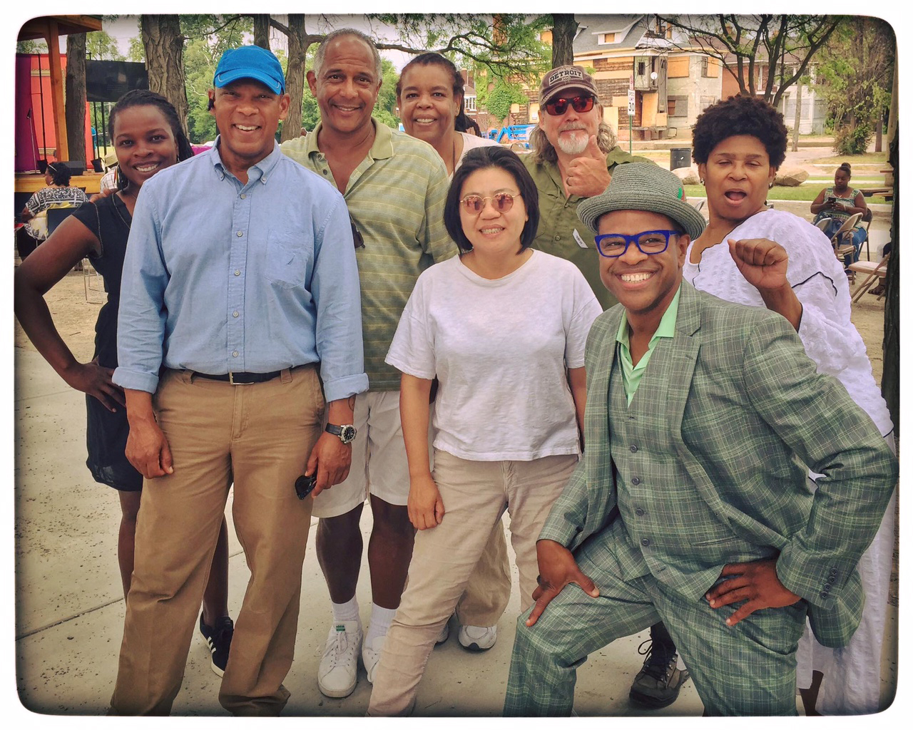 The Family Pictures USA production team celebrates the finale of their pilot shoot in Detroit’s Gordon Park: Tinisha Brugnone, Don Perry, Dillard Morrison, Juanita Anderson, Titi Yu, Scott David West, Thomas Allen Harris and Carole Gibson.