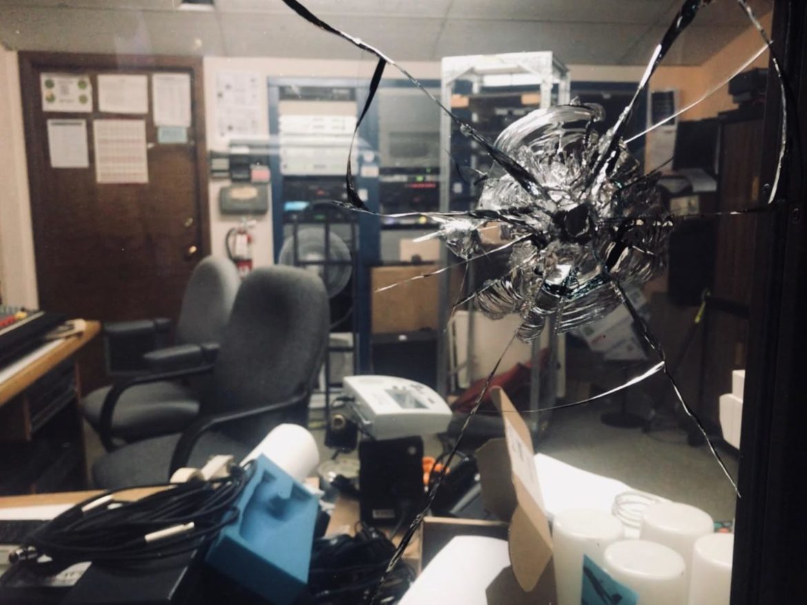 WORT is also working on replacing the glass in the studio that was damaged during the shooting.