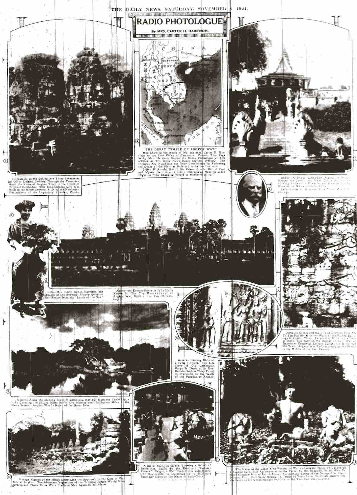 The printed component of WMAQ’s Radio Photologue, featuring a lecture from Edith Ogden Harrison on “The Great Temple of Angkor Wat.” Chicago Daily News, November 8, 1924.