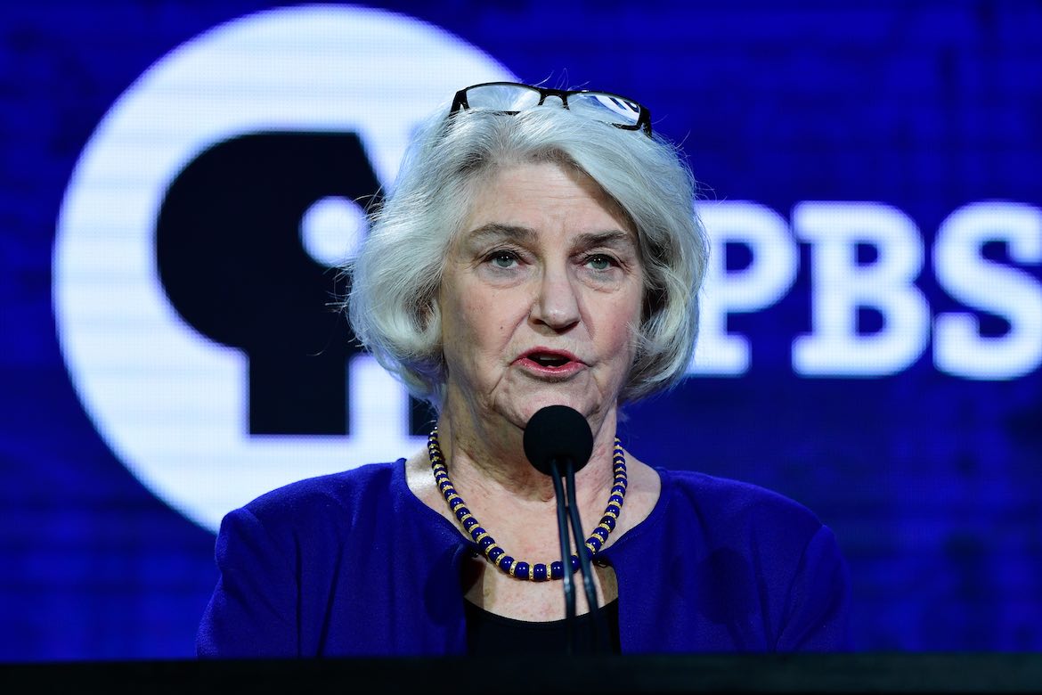 PBS President Paula Kerger speaks Saturday at the Television Critics Association Winter Press Tour in Pasadena, Calif.
