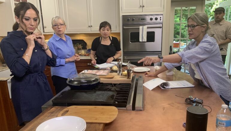 And yet for three days in early summer, chef Sara Moulton was behind the cooktop while camera operators, a sound mixer, a culinary producer and assistants, a makeup artist and interns were all over the kitchen and adjoining rooms. There was plenty of food prep underway, but meals for the crew were catered to get them through 10-hour workdays.
