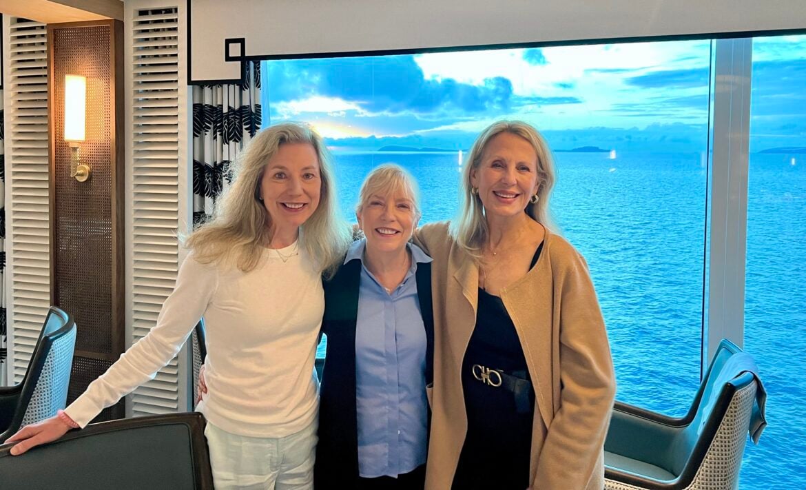 Stephanie Faison, Sara Moulton and Natalie Gustafson of “Sara's Weeknight Meals,” pictured on their recent cruise as the ocean liner moves from Gulf of Naples into the Tyrrhenian Sea.