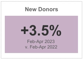 As noted last month, New Donor acquisition, which has been showing an upward trend since bottoming out in November, is up 3.5% for the period, completing two consecutive periods of growth. Small stations, up 6.8% for the period, appear to be leading the charge ahead of medium and large stations, up 4.4% and 2.1%, respectively. Radio stations, down 4.9%, continue to struggle in their efforts to add new donors. Focused efforts to raise public awareness of the distinct value proposition public media stations deliver, such as Public Media Giving Days, will be critical in attracting more first-time donors in coming months.