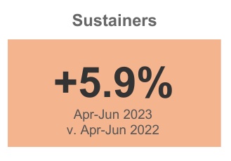 Sustainer giving, up 5.9% for the April to June period, is particularly strong among TV and Joint stations, where an 8.2% median increase is reported. Donors with sustaining gifts at Radio stations have remained relatively flat, down 0.2% for the period. Sustainer growth for stations of varied size appears relatively consistent, with large stations up 4.5%, medium stations up 8.4% and small stations up 6.4%.
