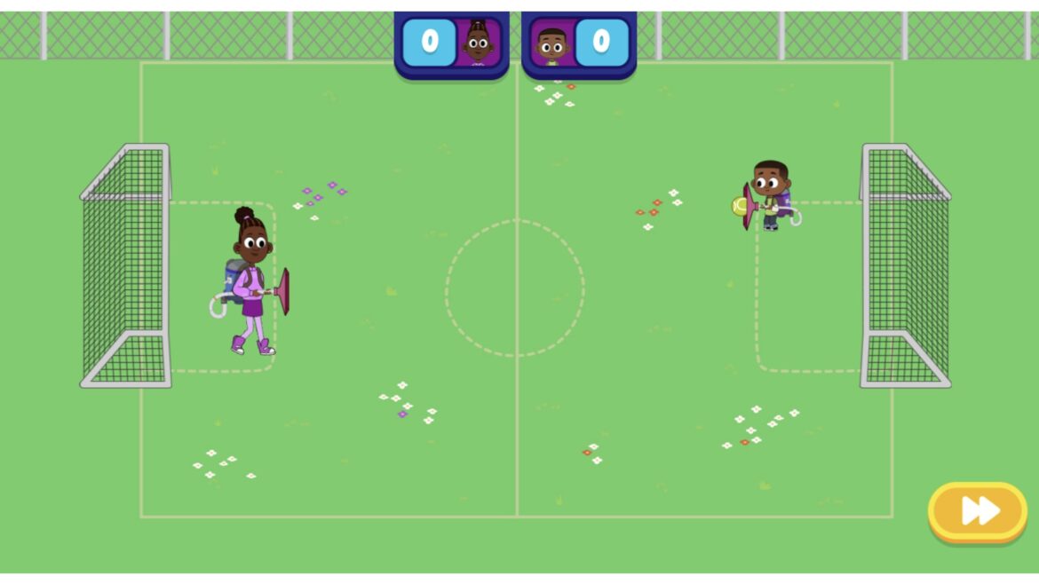 "Vacuum Hockey," a game based on the PBS Kids series "Lyla in the Loop," challenges users to launch a variety of objects into the opposing player’s net.