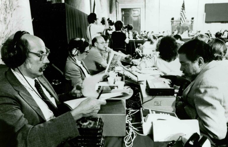 Bensky and producer Bill Wax covering the 1987 Iran-Contra hearings. (Photo: Chris Wilkins/Current Archive)