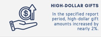 The Membership Revenue Index for the three-month period ending May 31 showed a 1.5% decrease in Membership revenue compared to the same three-month period in 2023 — the first such decline in the last 12 report periods. For much of last year, revenue growth was driven by high-dollar giving, as new donor declines persisted. The High-dollar Gifts Index shows a more modest 1.9% increase this period and did not offset a 16.4% decline in new donors.