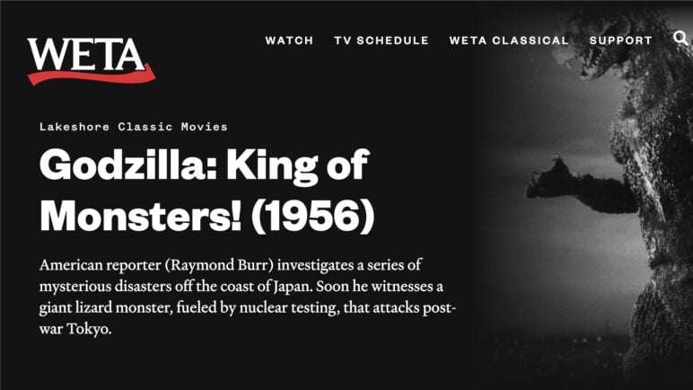 More than 100 classic movies that are distributed through Lakeshore PBS in Merrillville, Ind., also are available on WETA+, including Gaslight, To Kill a Mockingbird, Godzilla: King of the Monsters!, A Star is Born and Night of the Living Dead. Monteverde said the films will be presented with introductions from a local film critic who will provide context to the historical importance of the movies.