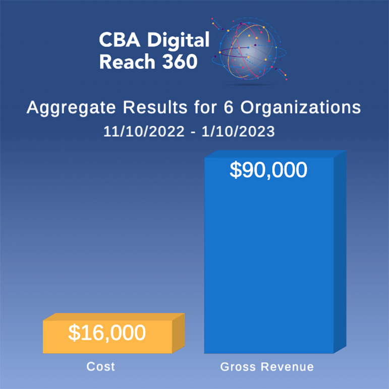 “We couldn’t be happier with how well the CBA Digital Reach 360 programs are working for the 40 nonprofits around the country that are on board with our ground-breaking digital service,” says Christina McPhillips, CBA’s VP of Business Development.