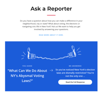 The series has also tackled questions on how to help hospitalized patients vote, how to find volunteer opportunities that match a particular skill set and how the layers of New York government work.