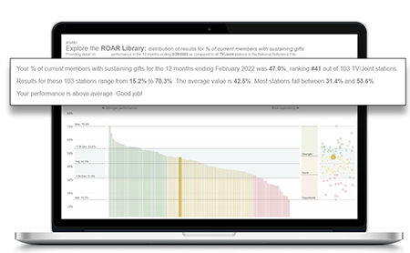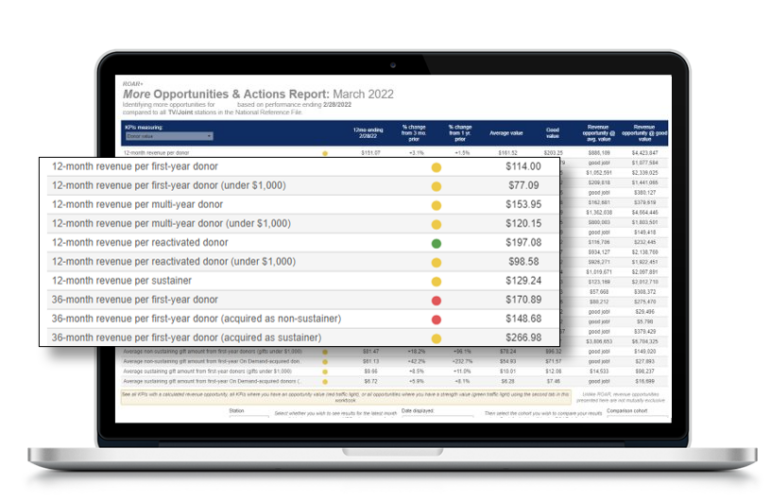 ROAR+ builds on the same framework stations have used to find opportunities from the ROAR but incorporates new sources of data to present findings from more than 100 new KPIs. With familiar ROAR concepts like the traffic light and revenue opportunities, stations are able to compare their fundraising performance to different station cohorts. The ROAR+ reporting suite will help stations answer questions like these: