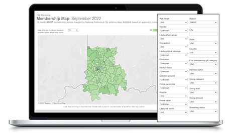The Membership Map is a geographic tool that places station donors in a “where context” that can help inform donor cultivation, retention, stewardship and recruitment strategies.