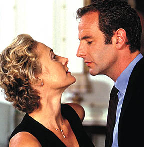 Steam rises from Caroline Goodall and Robson Green in Masterpiece Theatre's Jan. 26 [2003] offering, "Me & Mrs. Jones." (Photo copyright by Granada.) |